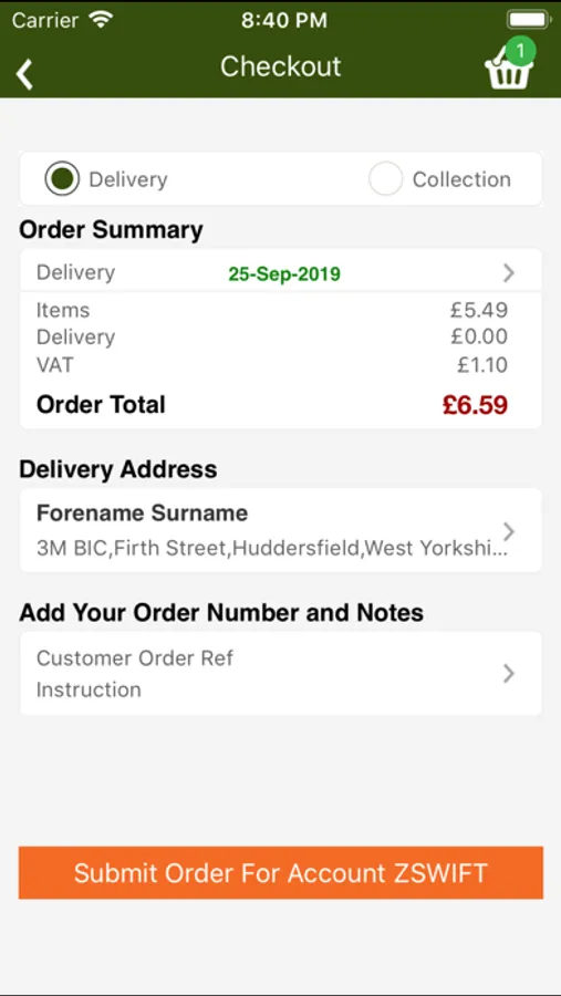 4. Place your order, then click and submit (partial orders can also be saved in the cloud to finish at a later date, on any compatible device)
