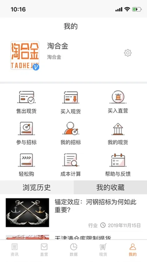 个人中心: 个人中心可以编辑账户的个人信息,查看账户在淘合金上的各种行为活动,还有一些小工具例如成本计算器等,方便行业内人员使用