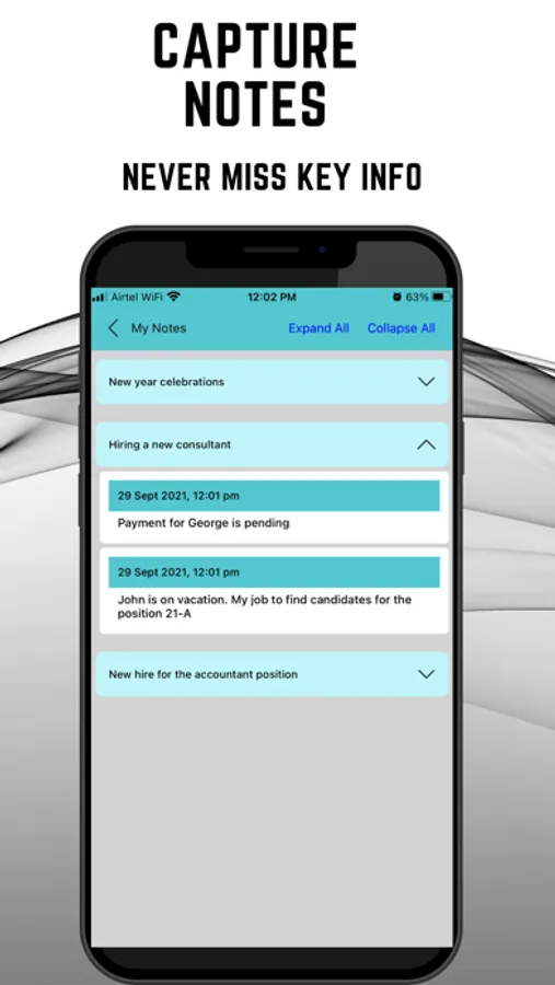 -Share notes with colleagues, visit or access the same from your chat at anytime