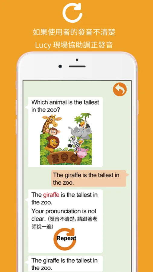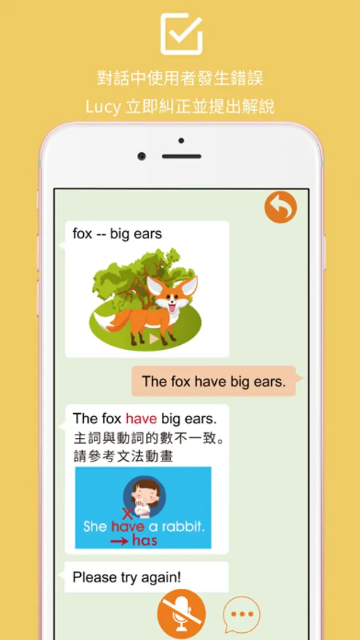 一段課程Unit 約15分鐘,以對話形式進行,輔以音效、圖像、動畫等多元媒體,引導使用者邊聽、邊學、邊說。使用者若說錯了,或發音不良,Lucy 會即時指正,並給予協助