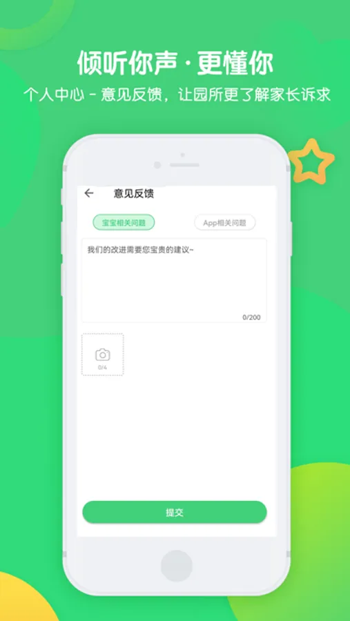 随时知晓幼儿园新闻通知;线上缴费·更方便;更有倾听你声·更懂你;e端操作助力家长更轻松。