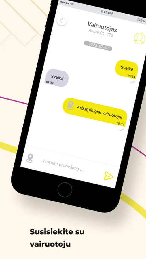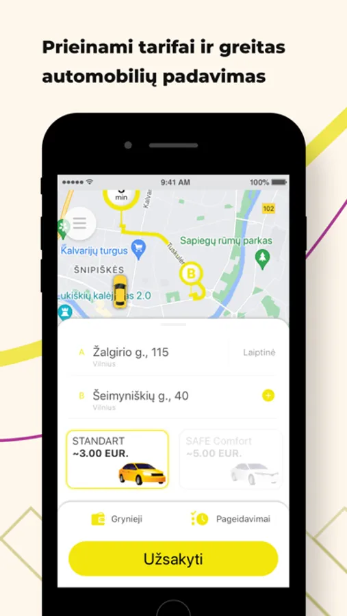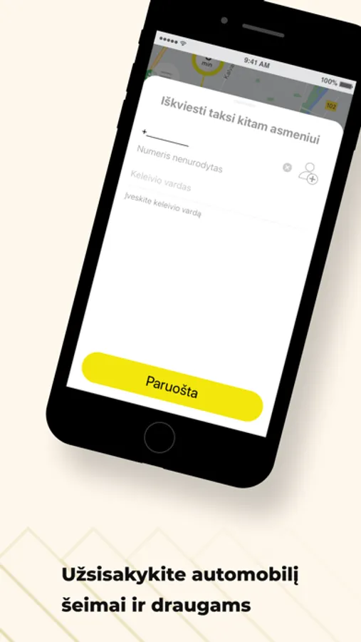 Sekite kelionę žemėlapyje. Programa parodys atvykimo laiką, automobilio markę, spalvą, automobilio numerį, taip pat vairuotojo vardą.