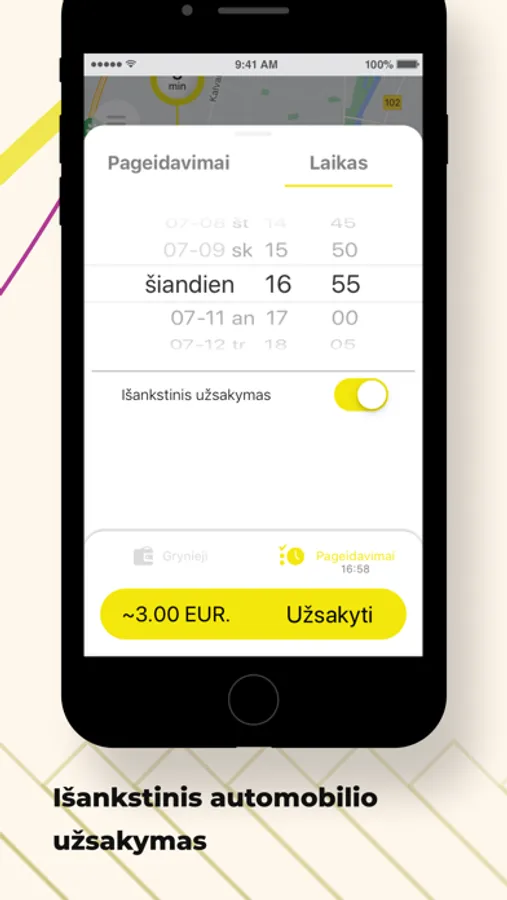 Planuokite keliones iš anksto, išankstinis užsakymas leis iškviesti automobilį pagal Jūsų nurodytą laiką.