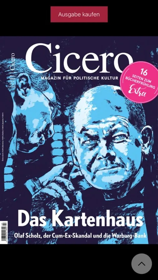 Cicero, Magazin für politische Kultur, ist Deutschlands großes meinungsbildendes Monatsmagazin und bietet analytische Hintergrundberichte, Reportagen und Porträts zu aktuellen Themen und Persönlichkeiten aus Politik, Wirtschaft und Kultur. Seit der Gründung 2004 steht das Magazin für Glaubwürdigkeit, Werteorientierung und Unabhängigkeit. Als ausgewiesenes Autoren- und Debattenmagazin bestimmt Cicero den öffentlichen Diskurs maßgeblich mit und hinterfragt Meinungen und Meinungsmacher.