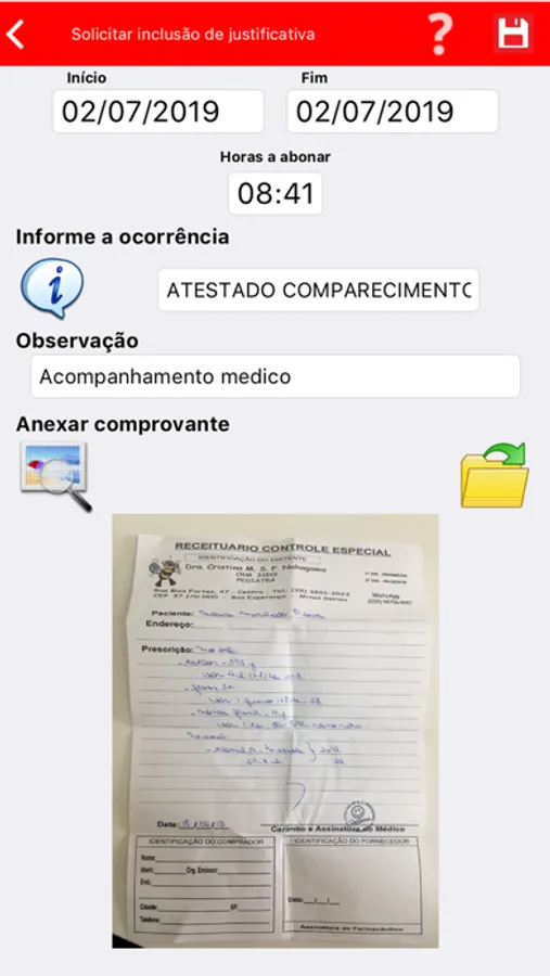 Com o app você consegue enviar solicitações de inclusão de ponto e solicitações de justificativa de falta, como atestados médicos, através de foto.