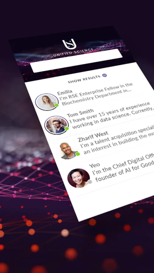 Unified Science mobile app brings together people interested in themes related to Science, Academic Collaboration, Distributed Ledger Technologies, Decentralised Platforms, Human Centric Internet, and the Next Generation Internet. The App helps the members to find out about events and sign up to them, search for topics of their interest and communicate with other members by exchanging chat messages & using IP-based voice calls.