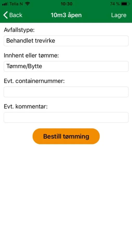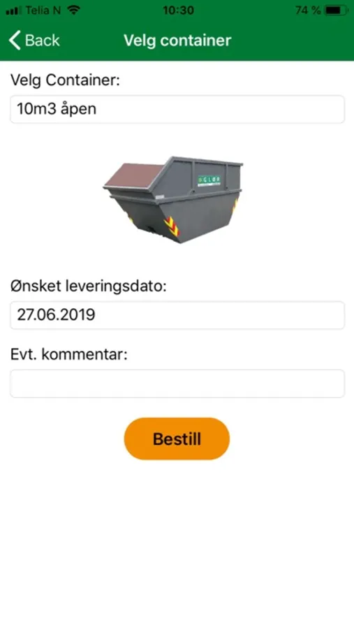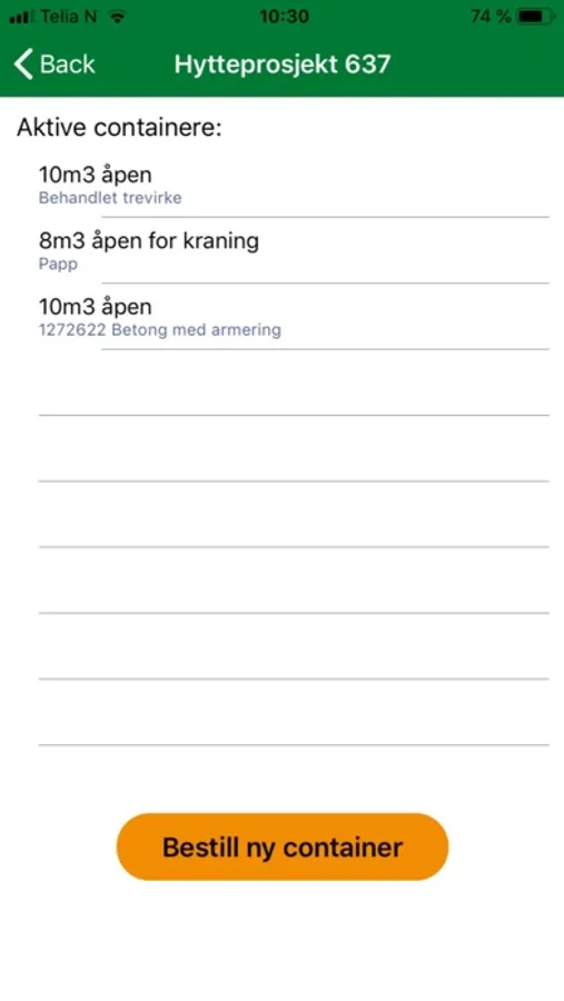 En app laget for næringslivet som gjør det enklere å bestille containere og lett-vekk bag'er til dine prosjekter. Tømming og bytte av container kan også gjøres i app.
