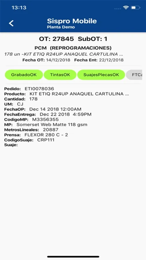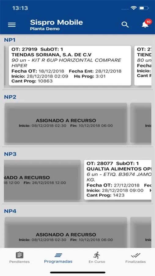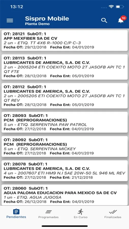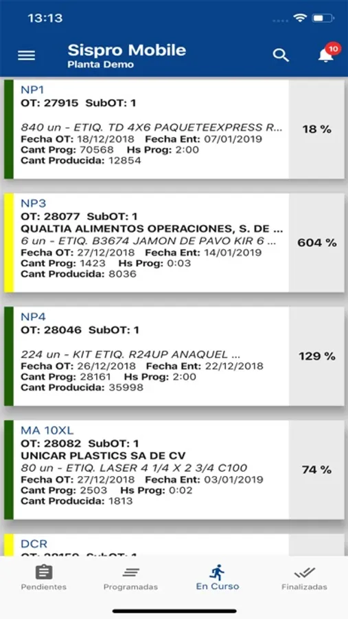 Aplicación para ver ordenes de producción planificadas en SisPro. Visualizar ordenes pendientes, planificadas, en curso y terminadas. Notificaciones de planta, busqueda por orden de producción, cliente y producto. Visualización de varias plantas en simultaneo