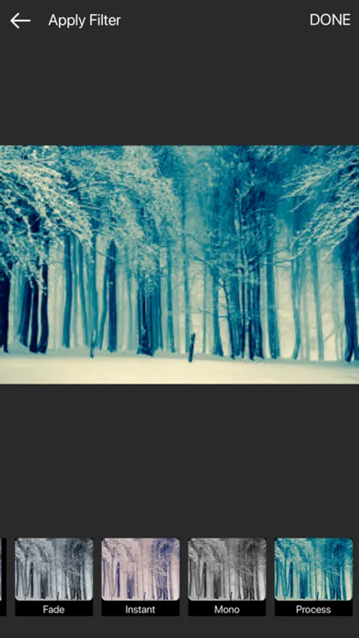 Over 40 FREE photo filters included: Process, Sepia,Mono,Fade,Instant,Bloom, Chrome, Invert,Noir, Dot, Line,Dept,Gloom, and many more.