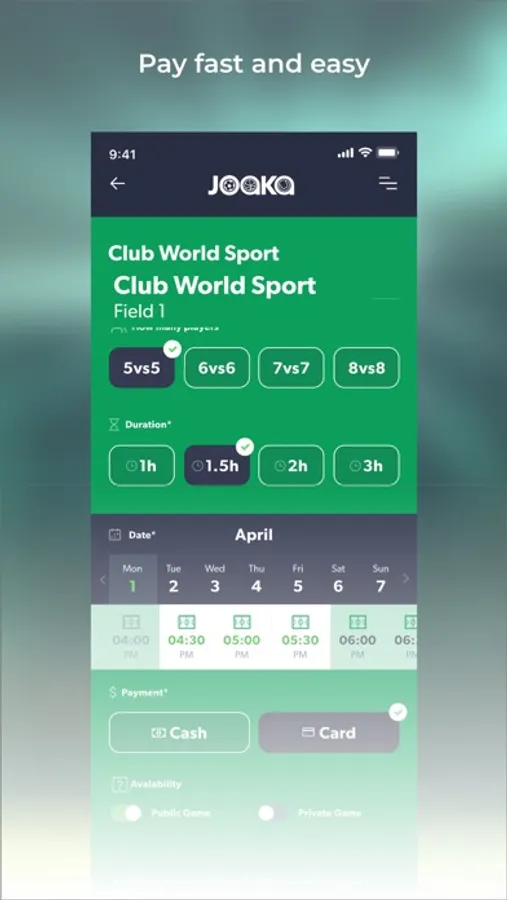 - Verifică facilitățile și programul și alege un teren - Selectează cât vrei să joci și când îți dorești să te joci