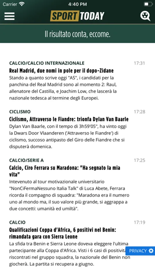 Lo sport sei tu, lo sport siamo tutti noi. Ventiquattro ore su ventiquattro. Con Sport-Today.it puoi restare sempre aggiornato su quello che è appena successo ma anche su quello che succederà. Perché lo sport è un’emozione da vivere minuto per minuto. Sempre. Che sia calcio o tamburello, MotoGp o frisbee, tennis o freccette: tutte le discipline hanno pari dignità quando c’è la passione. App-passionati anche tu, scarica la nostra app....e benvenuto nel nostro mondo!