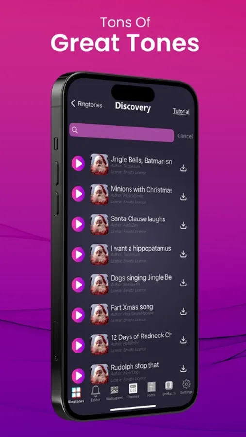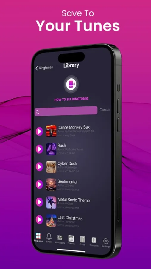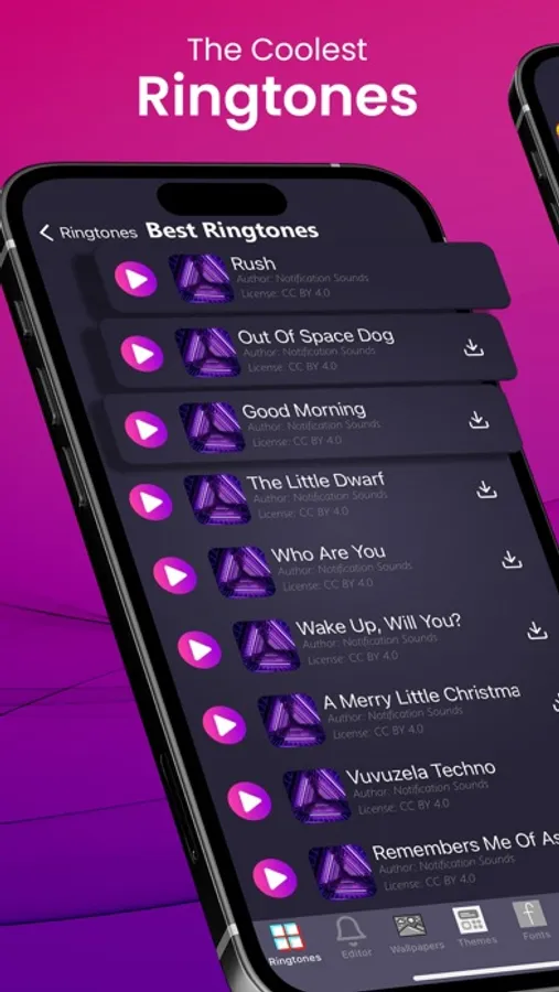 Sounds & music used in ringtones app are under public domain license and/or Creative Commons’ license, credited inside the app.