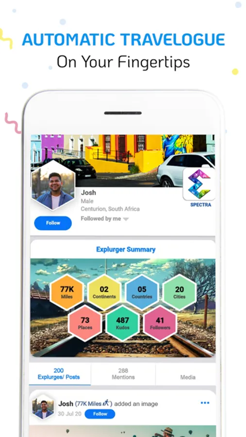 Explurger is redefining the way we socialise. Sharing experiences take centre stage on this social media app. Besides posting pictures and videos you can keep a count of the exact miles, cities, countries & continents travelled.