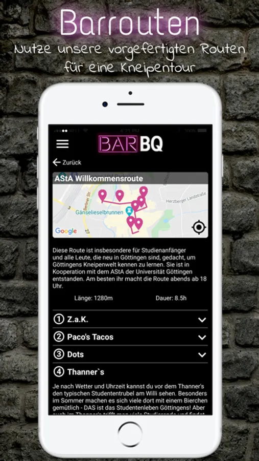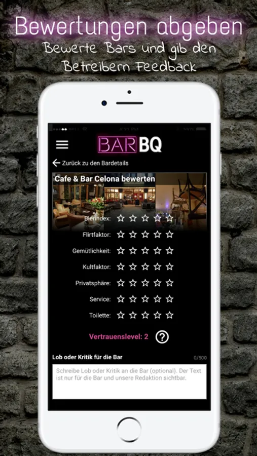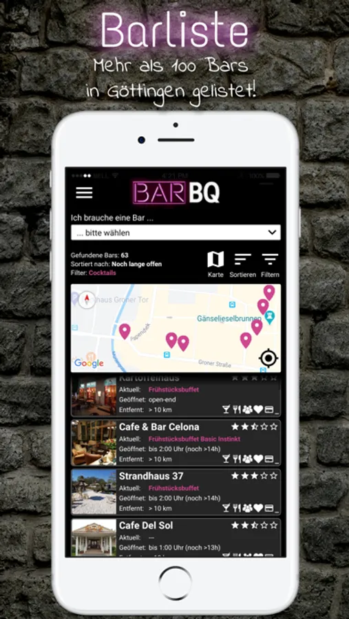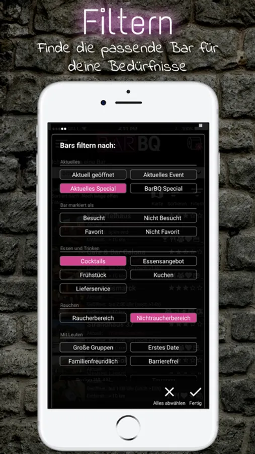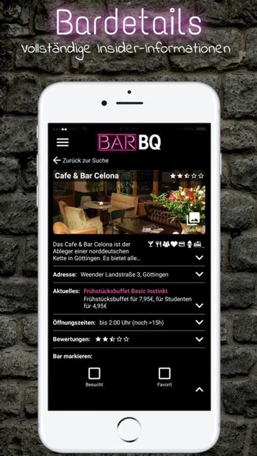 - Markiere Bars, die du bereits besucht hast, und speichere deine Favoriten ab.