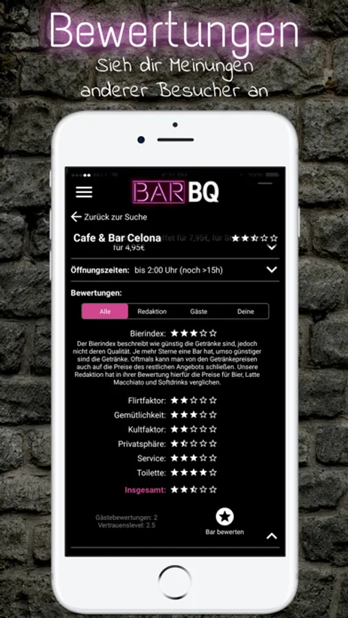 - Ist dir der Kultfaktor wichtiger als die Sauberkeit der Toilette? Passe das Barbewertungsschema individuell an deine Prioritäten an.