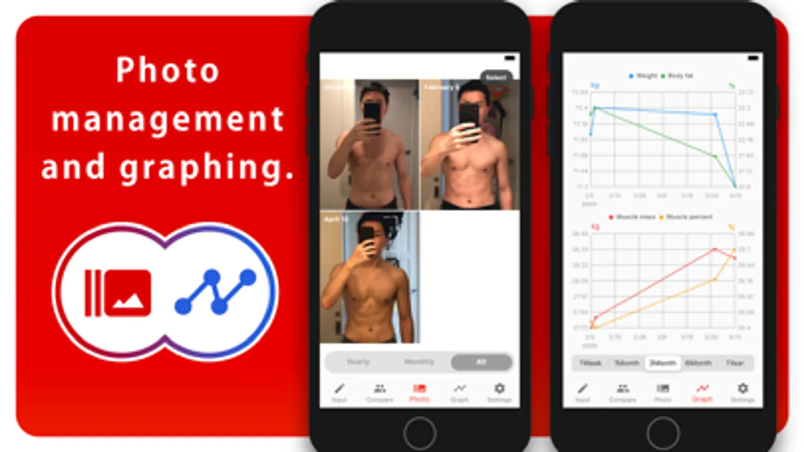 A simple and easy to use app that makes it easy to continue. All you have to do is register your weight, body fat percentage and photos.