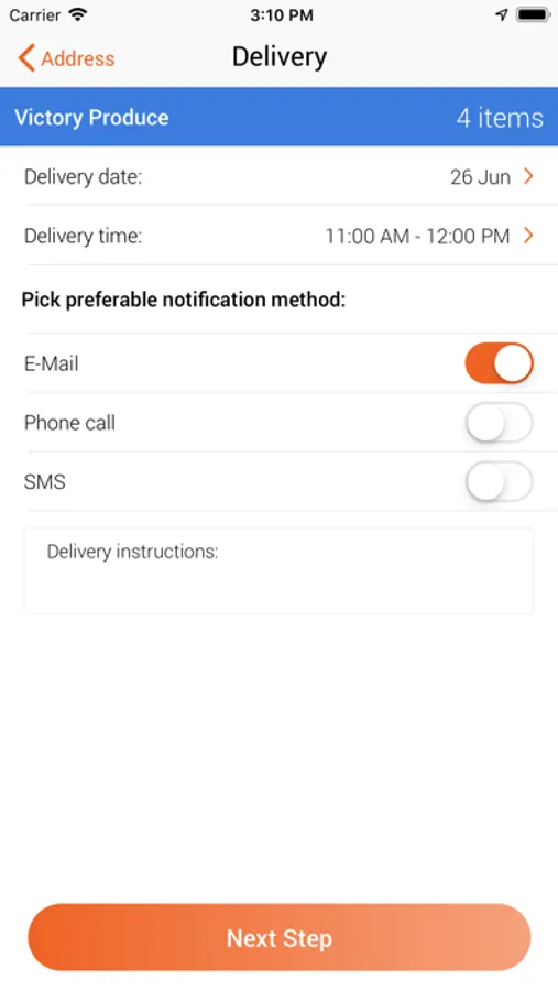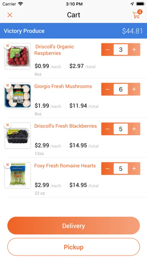 Hope you will like Victory Produce online experience and will stay with us! We have several delivery options to meet all your needs: the order can be delivered as soon as you complete your order or you can choose a time slot that will provide you the most affordable delivery option!