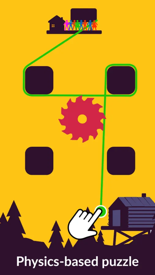To rescue the friends waiting at the starting point of this dangerous valley, draw a line with your fingers and after reaching the other home, tap on the screen to let the passengers go on the zip line. How long you hold your finger on the screen, the more passengers do zip line. To avoid the dangers, you can draw the line around the blocks, you can move the line just like a rope. The game mechanic is based on whipping a rope.