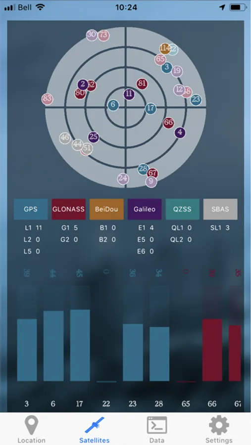 -Skyplot of all-in-view constellations: GPS, GLONASS, GALILEO, BEIDOU, QZSS, SBAS