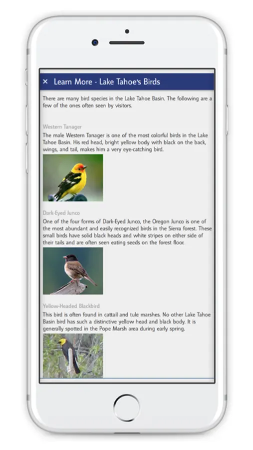 Search and discover points of interest while boating or paddling on Lake Tahoe. The Lake Tahoe Boating app uses GPS to help you find nearby marinas, boat ramps, public piers, beaches, bathrooms, fueling locations and much more. You'll also find information about historic places, best boating practices, emergency contacts, wildlife, plants, and real-time weather.