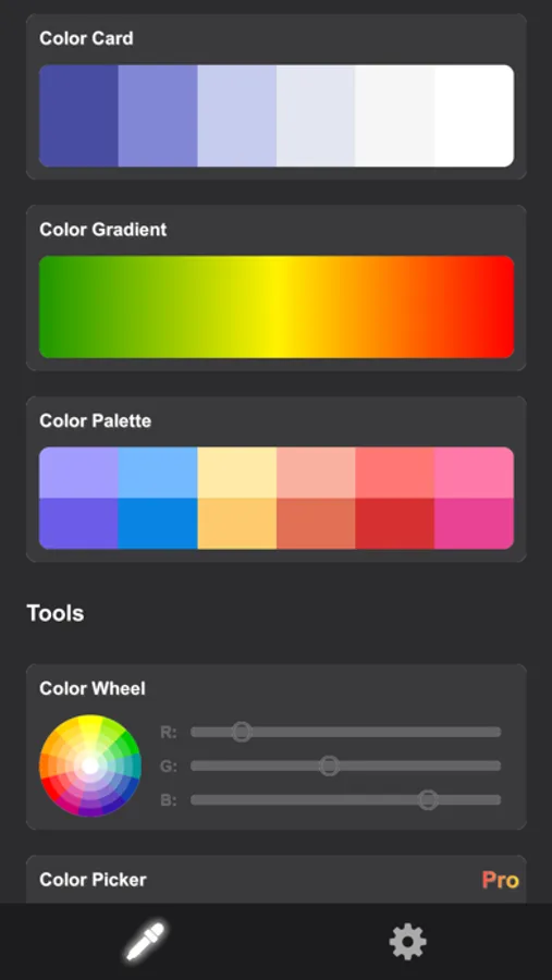 Automatic picture color matching, support album photo or photo capture color, easy to use color wheel, detailed color data, powerful and easy to use card production, share color cards to your friends or save in your phone.