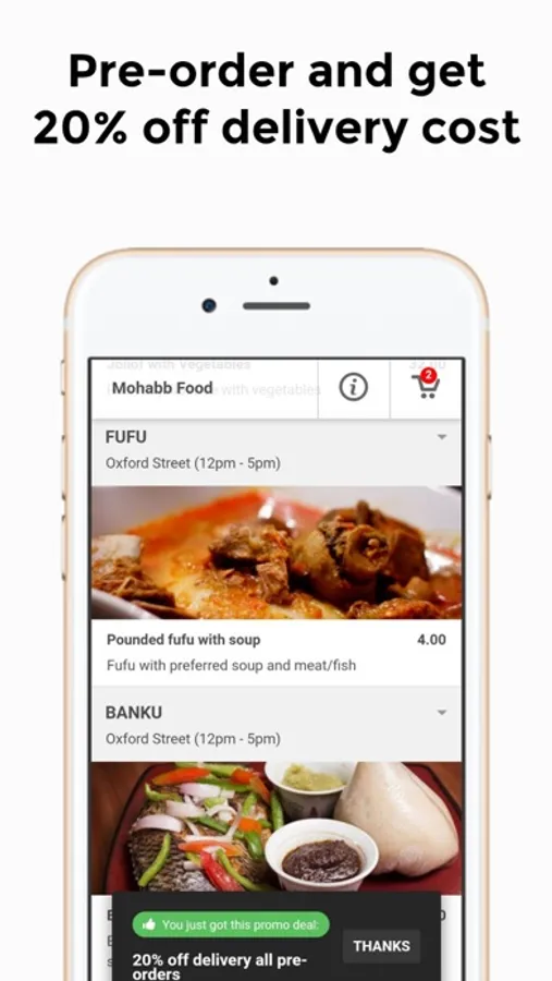 You can save 20% on delivery cost if you pre-order any meal on Mohabb Food. What are you waiting for?