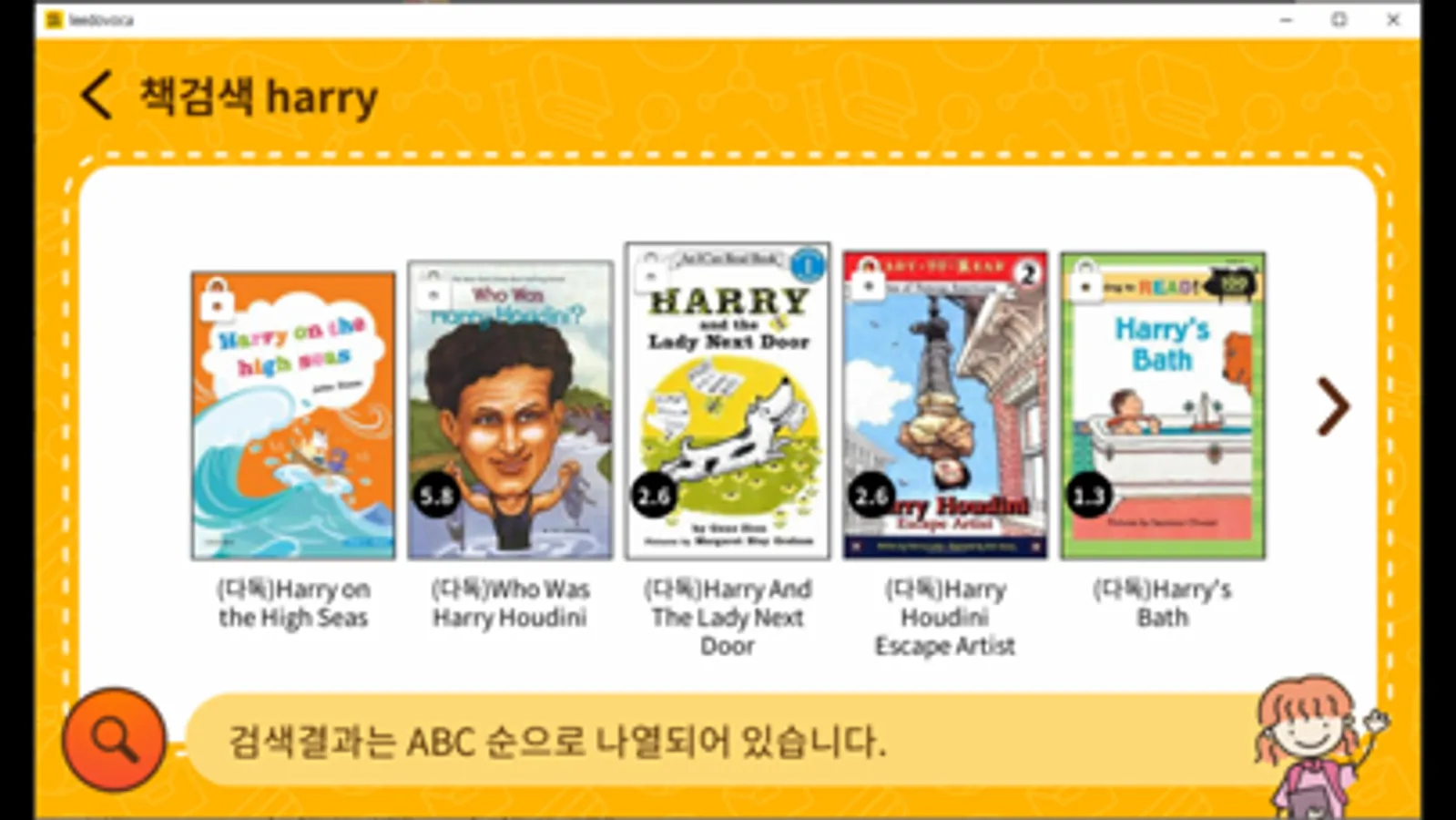 ■ 현재 앱에는 Usborne, Roald Dahl, Nate the Great, Arthur, Disney 등 챕터북과 리더스로 부터 1984등 고전명작과 해피포터와 같은 베스트셀러 그리고 뉴베리 수상작까지 국내에서 인기있는 원서 시리즈가 총 망라되어 서비스되고 있습니다.