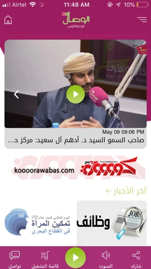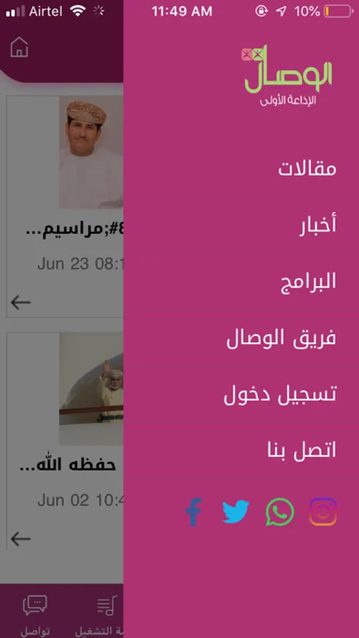 بدأ بث إذاعة الوصال في التاسع عشر من مارس 2008م في محافظتي مسقط والباطنة على تردد 96.5 FM وتوسعت بعد فترة وجيزة ليصل البث إلى محافظة ظفار على تردد 95.3 FM وفي الشرقية على 98.4FM وفي البريمي على100.7 FM ومسندم على 102.2 FM والداخلية على 103 FM والظاهرة على 105.4 FM.