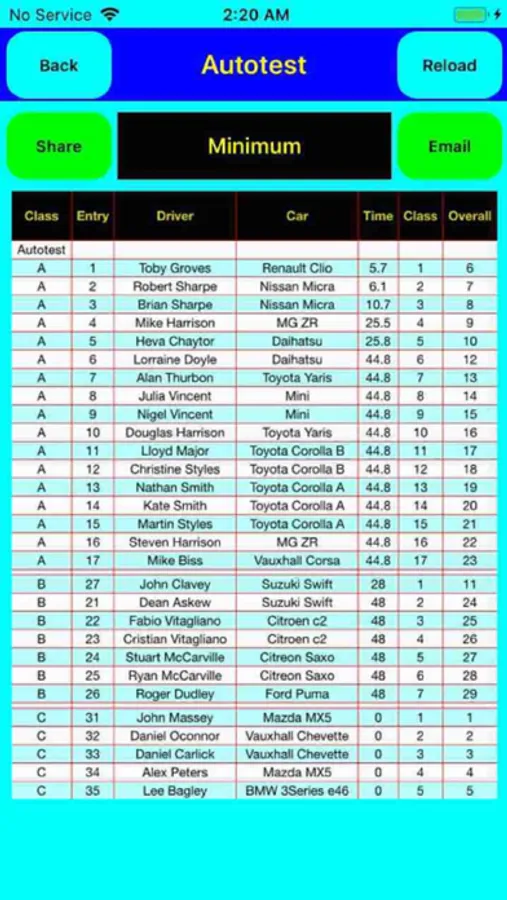 Production Car Autotest and Autosolo Timing App and Leaderboard Solution