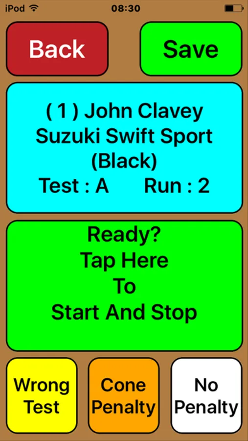 Cars are timed using the App, penalties can be recorded after each run and then results are sent to a web server database where all the calculations are performed to produce a live leaderboards.