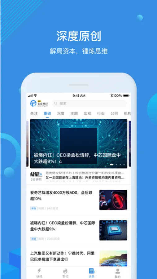 直击国内外金融市场重大突变;覆盖A股、H股、美股主流全球市场;第一时间告诉你,who&what 正在影响你的财富……