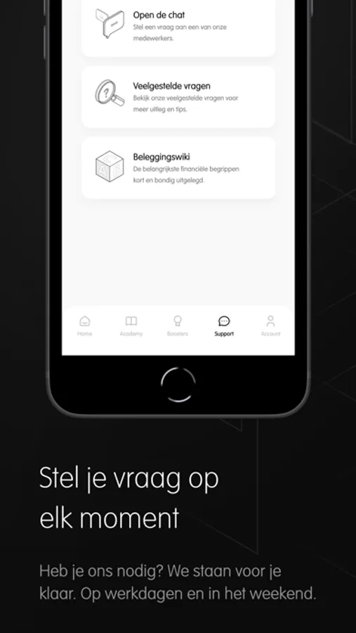 Via de Semmie app volg je 24/7 de prestaties van je beleggingen. Heb je ons nodig? Onze experts beantwoorden graag al je vragen. We staan voor je klaar. Op werkdagen en in het weekend.