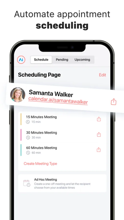 Schedule meetings fast and eliminate those back-and-forth emails. With Calendar.AI, you can set your appointment scheduling to auto-pilot, with your personal scheduling page, for free!