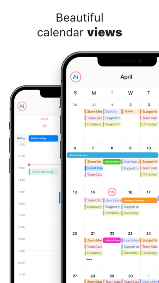 - Beautiful calendar & planner with Day, 3 Days, Week, Month, and Agenda views.