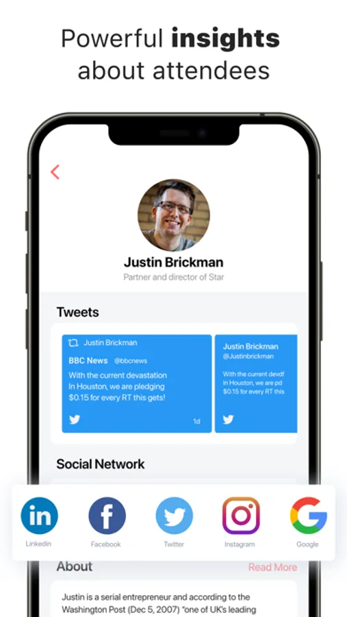 - View insights on meeting attendees from your schedule: including employment history, social profiles, photos, and more.