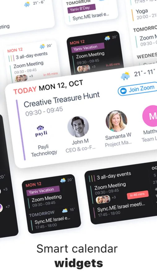 - Sync multiple accounts: Google Calendar, Office 365, and Outlook calendar.