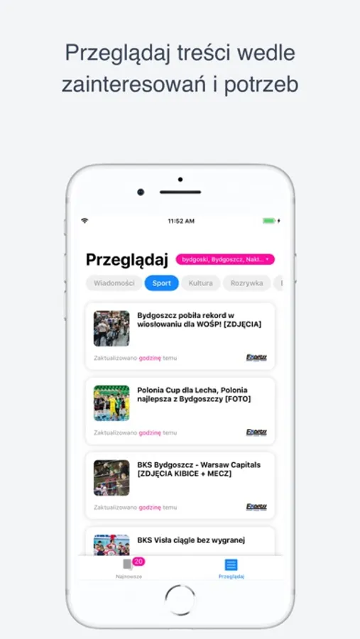 • Oszczędność czasu - W każdej chwili masz przy sobie najnowsze wiadomości - tylko te, które Cię interesują.
