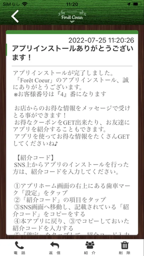 Foret CoeurのアプリをSNSを通じてお友達に紹介する事ができます。