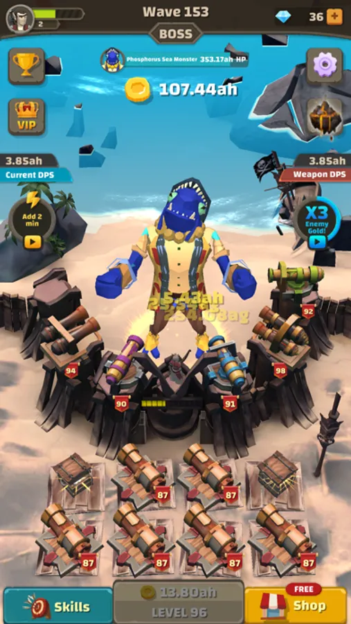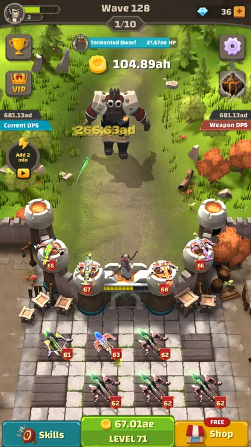Merge your weapons to upgrade them and deploy them on your castle to attack enemies
