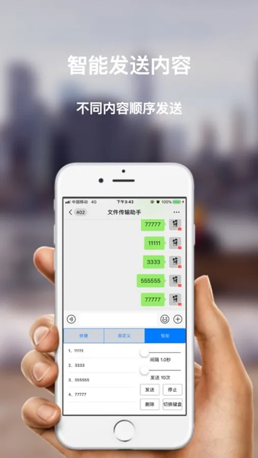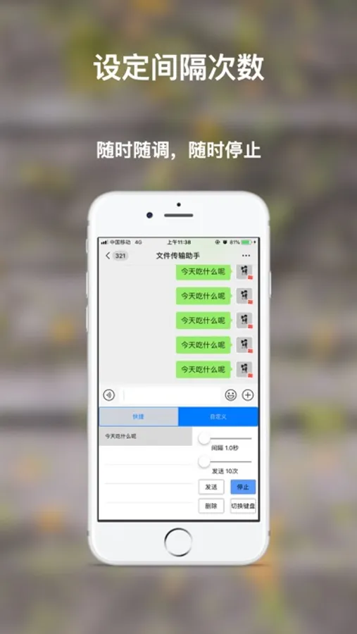 This time a keyboard can automatically send information, can be repeated to send information and can only send information, you can set the time interval, chats, send number.