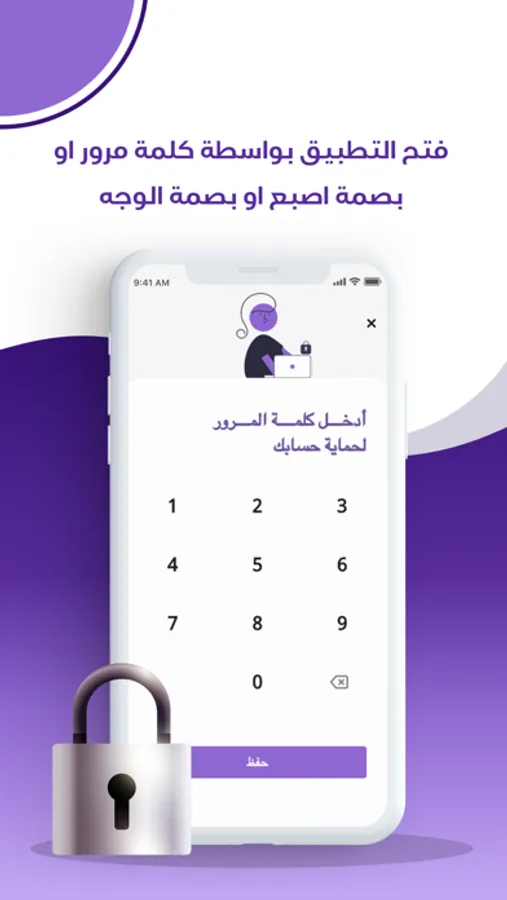 امكانيه استخدام كلمة مرور أو بصمة الاصبع
