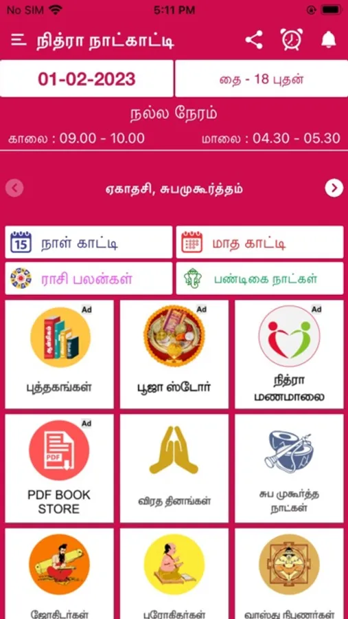 4. Tamil Panchangam 2023, Subamuhurtham days, Fasting days for 2023 are shown monthly wise in this offline app