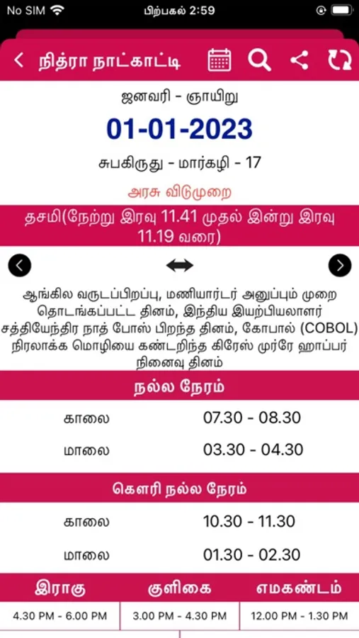 1. Nithra ‘Tamil Calendar 2023 Offline' app consist of details for the entire year 2023/365 days with daily and month view
