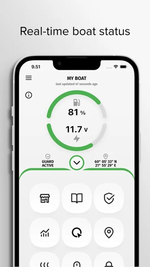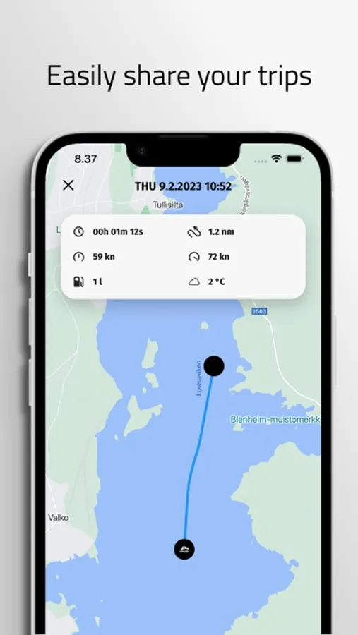 By linking the Q Experience app with your Q device you can see e.g. boat location, fuel level and battery voltage. Automated logbook stores each trip you take. You can view trip information and share your boating experiences to others.