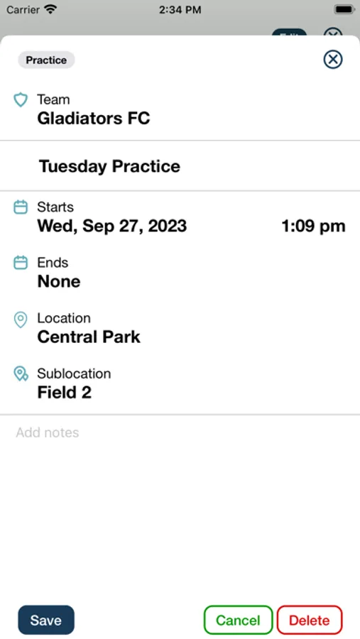 - Get directions to practices and games