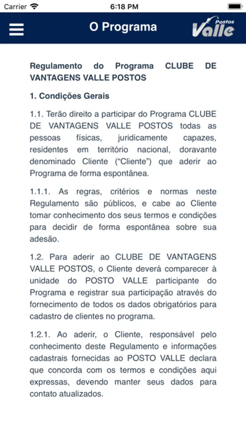 Aplicativo do Posto Valle distribuidora contêm informações importantes dos postos e acesso para os clientes.