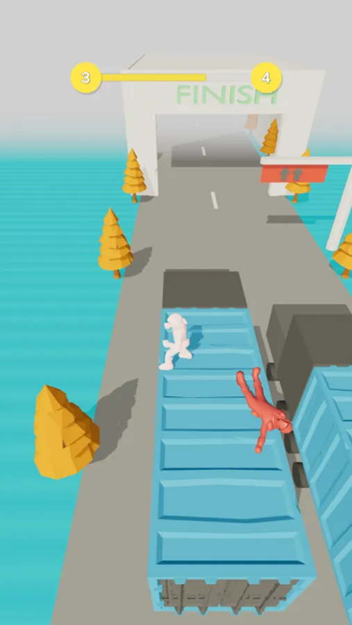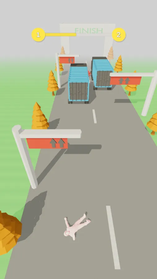 Jump on the Trucks without hitting the obstacles or falling off and get to the goal.