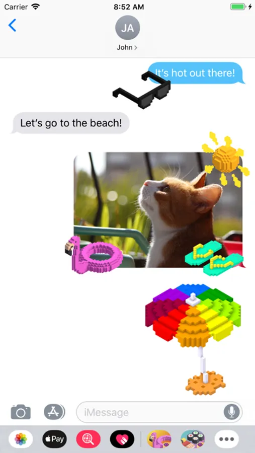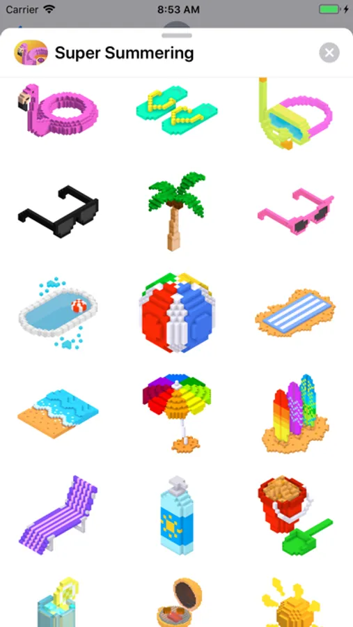 Super Summering is a vibrant sticker pack that includes many options for you to share with your friends and family when your having super fun in the sun. It combines the fun of the summer season with the fun of video games using a stylized 3D pixel art look.