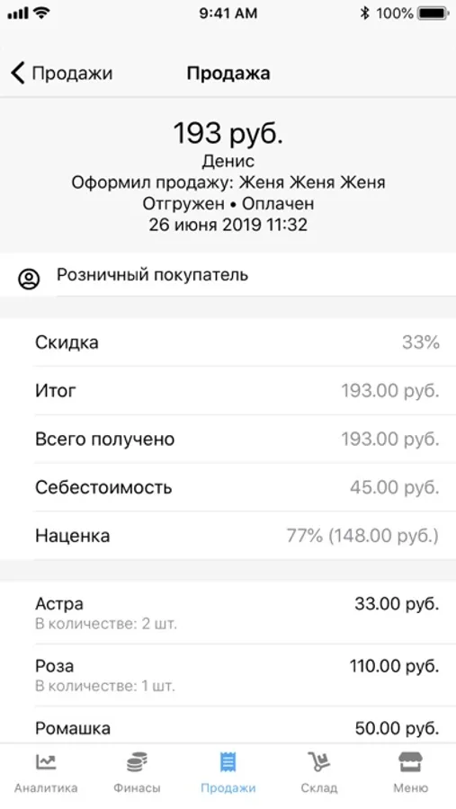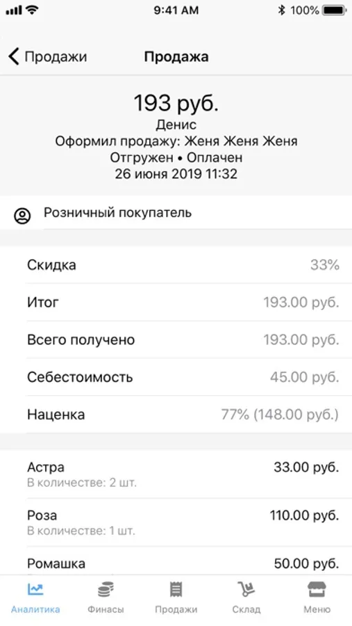 - сумма денег в кассе, отчеты по продажам, среднему чеку, и пр.