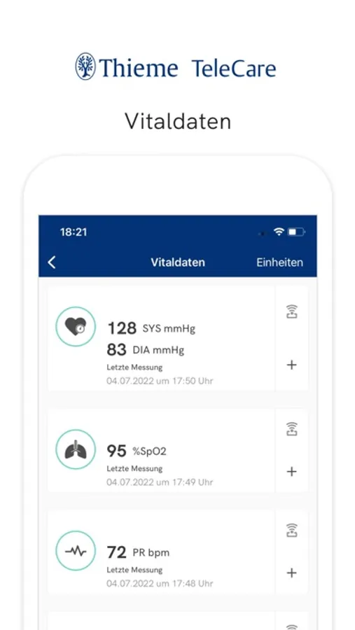 Vitalparameter (u.a. Blutdruck, Blutzucker, Sauerstoffsättigung, Peak-flow-Wert, Gewicht, Aktivität) messen und dokumentieren (analog oder telemetrisch)